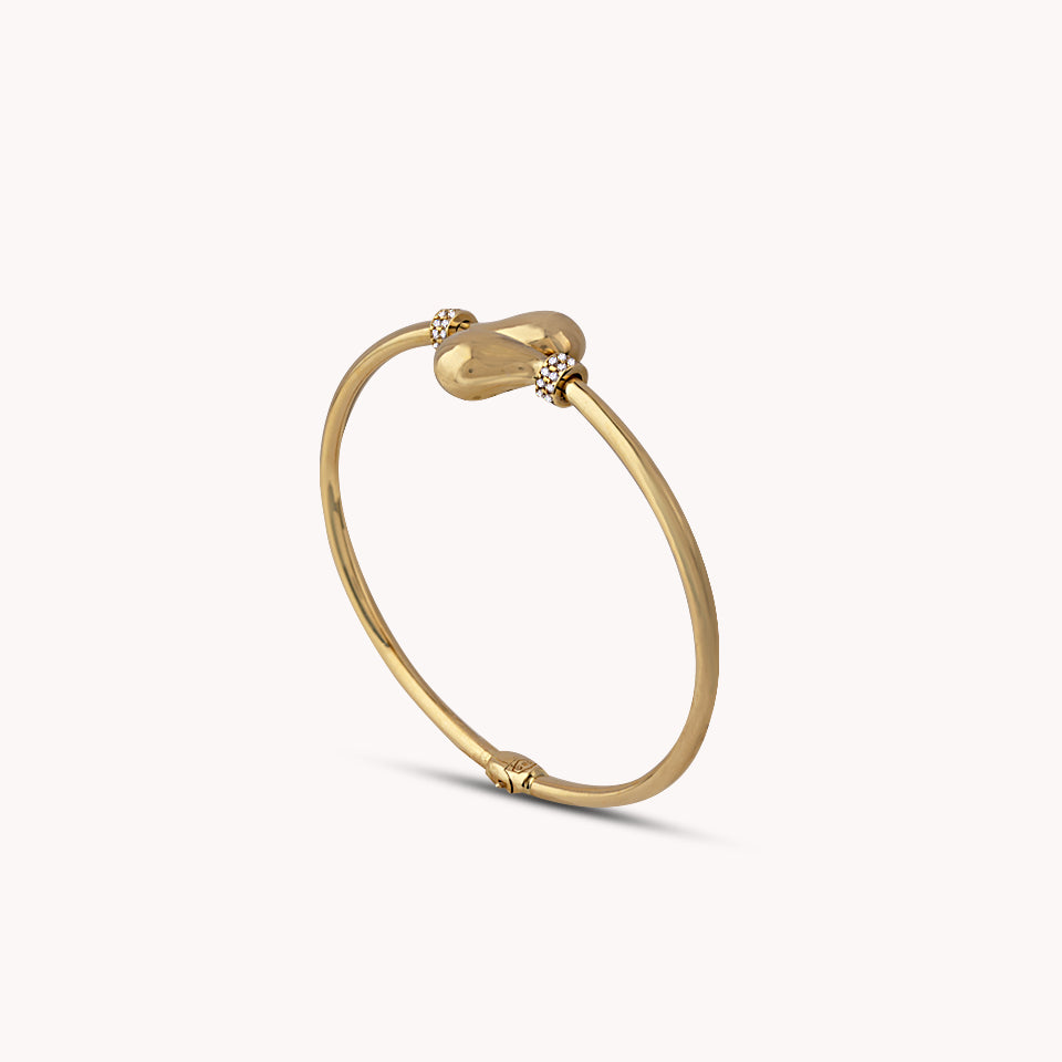 The Divinity bracelet, crafted in 14 Karat gold and weighing 7.16g, features a graceful open-ended design with two delicate spheres, accentuated by subtle detailing that adds a refined touch. This piece embodies elegance and sophistication, making it a timeless addition to any jewelry collection.
