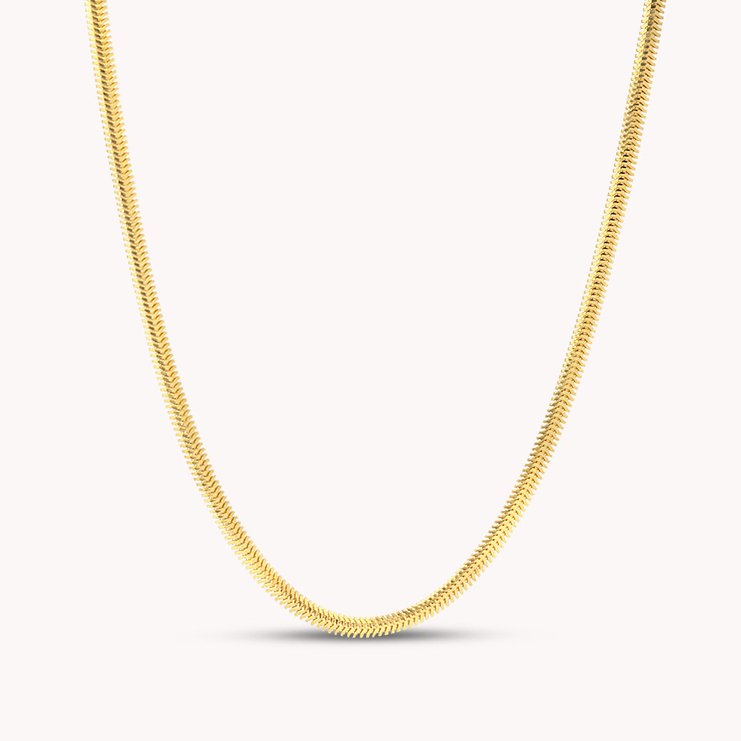 The Lumis necklace, crafted in 14 Karat gold and weighing 10.50 grams, features a sleek, serpent-inspired design that wraps gracefully around the neckline, exuding elegance and timeless charm. Its lustrous finish ensures a captivating shine, making it perfect for both day and evening wear.