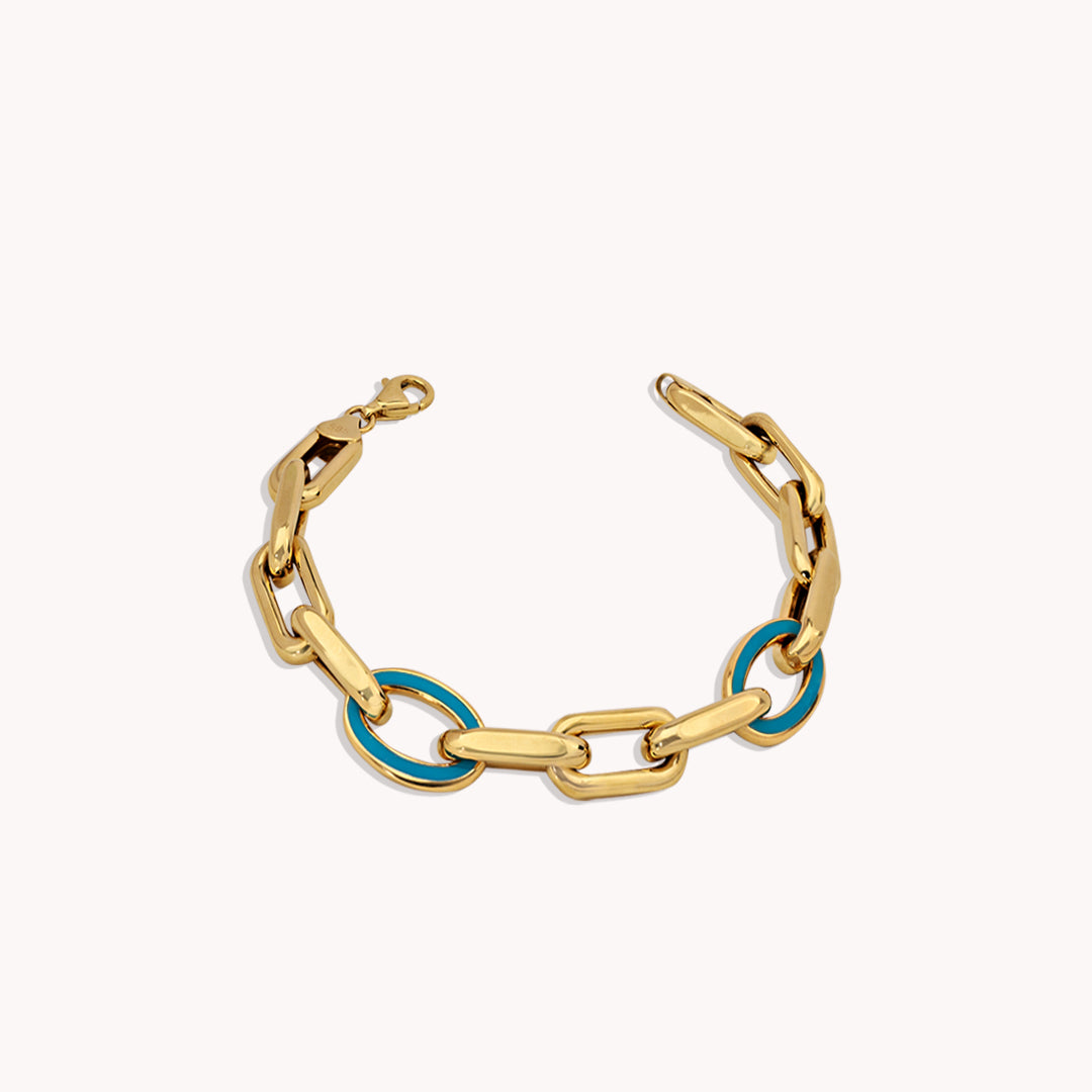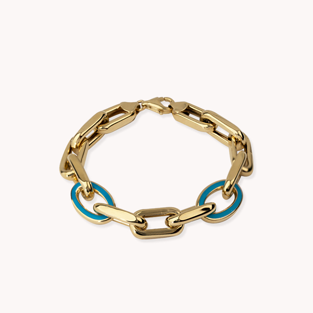 The Anchor, crafted in 14 Karat gold and weighing 14.78g, features bold chain links interspersed with blue accents, creating a powerful yet stylish statement piece. Perfect for those who appreciate a blend of strength and elegance