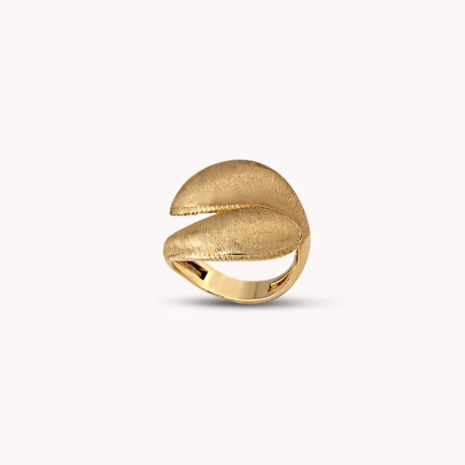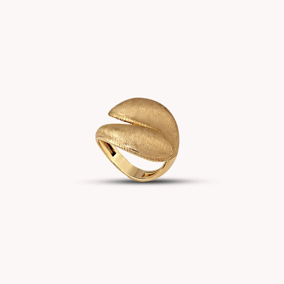 The Dune Ring, crafted in 14 Karat gold and weighing 5.96g, features a smooth, sculptural design reminiscent of sand dunes, bringing an organic and bold elegance to any ensemble.