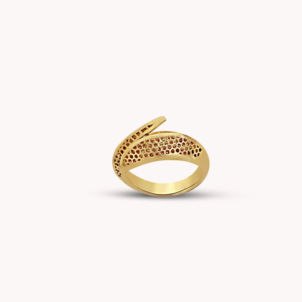 The Ember Ring, crafted in 14 Karat gold and weighing 2.61g, features a striking, fiery design with intricate detailing that evokes a sense of warmth and boldness, perfect for adding a unique flair to any look.