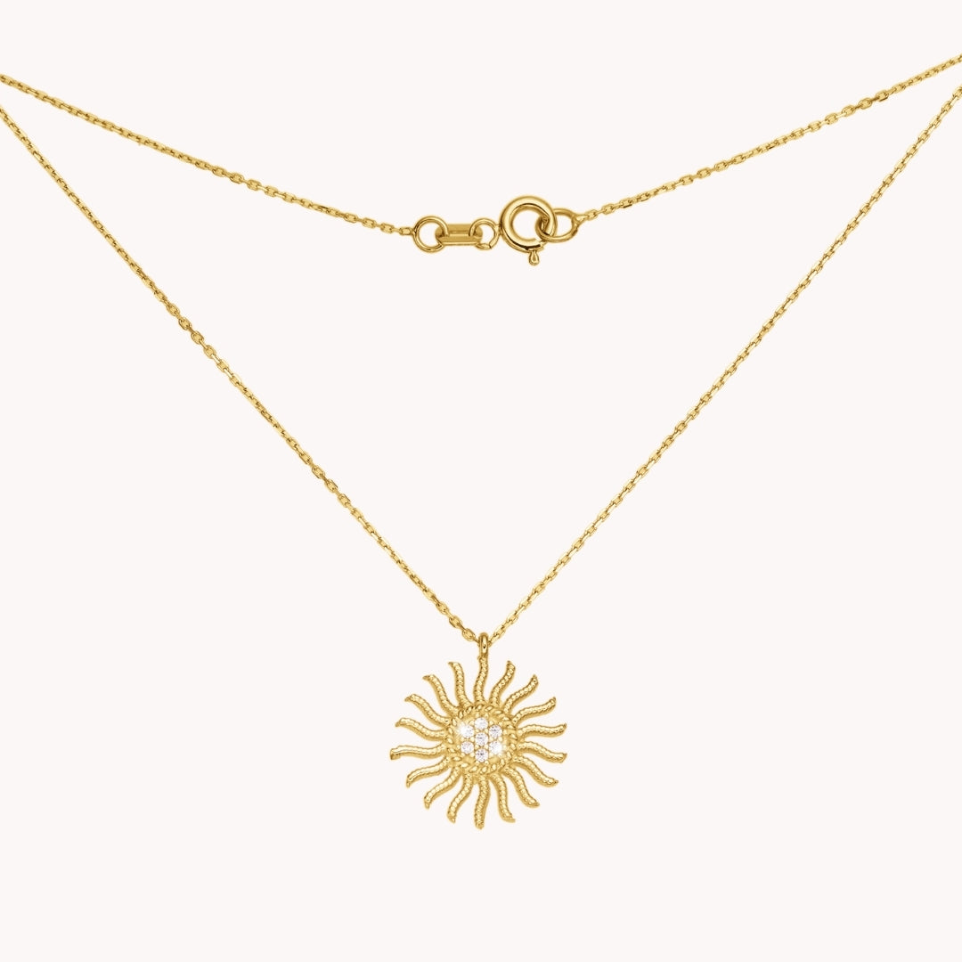 Radiate brilliance with this 14 Karat, 1.95gr Sun necklace, which features a design inspired by the celestial body, shining with endless warmth and energy.