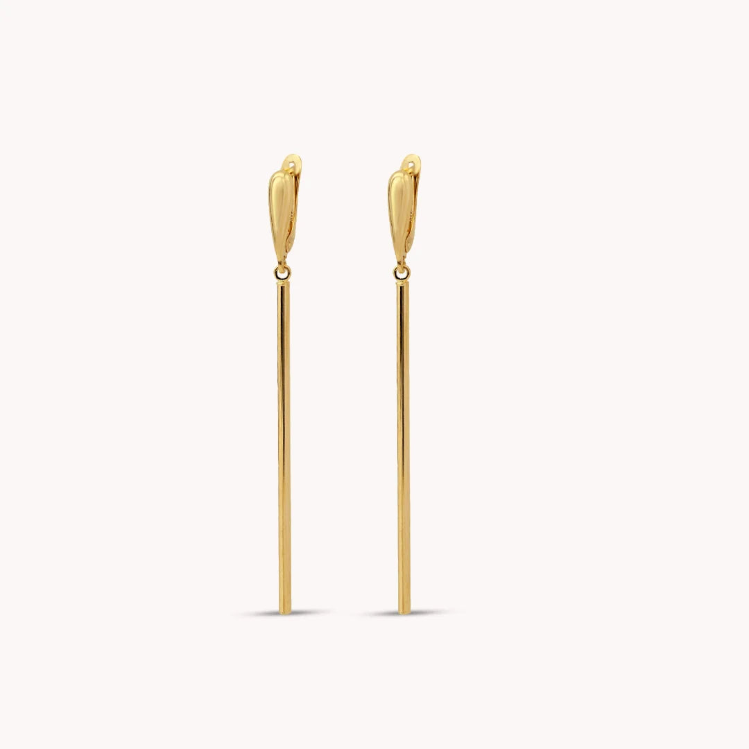 The Linear Earrings, crafted in 14 Karat gold and weighing 2.76g, feature a sleek and minimalist design with elongated bars, offering a modern, elegant touch to any outfit.