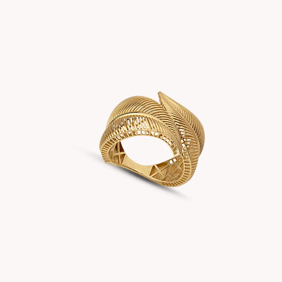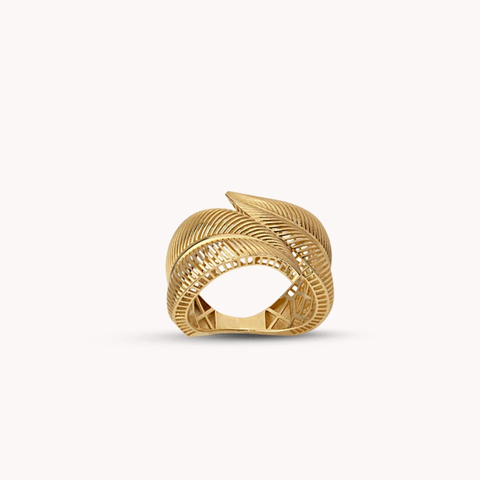 The Verdant Ring, crafted in 14 Karat gold and weighing 3.83g, features intricate leaf patterns that evoke the beauty of nature, offering a delicate yet bold statement for those who appreciate organic elegance.